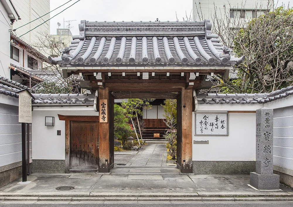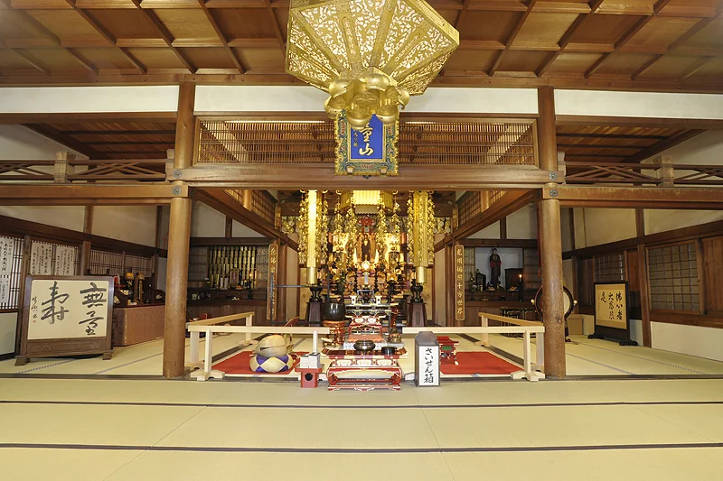現在の宝蔵寺本堂は昭和7年(1932)に再建された反り破風が印象的な間口六間奥行七間の木造入母屋造りの建築となっております。